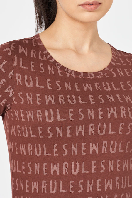 Brown Printed Athleisure Half Sleeves Round Neck Women Regular Fit T-Shirt